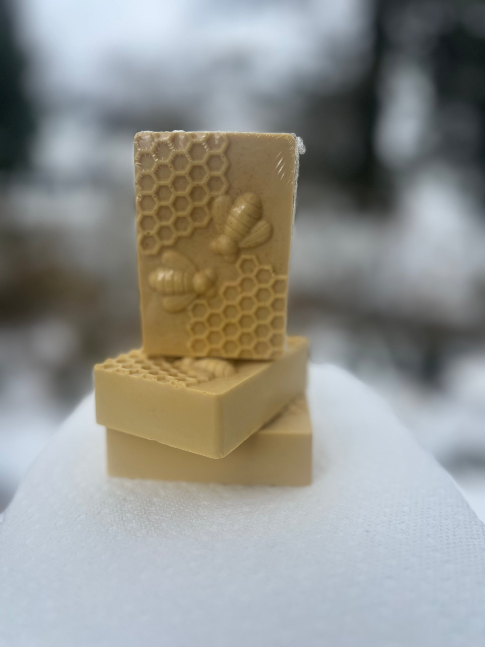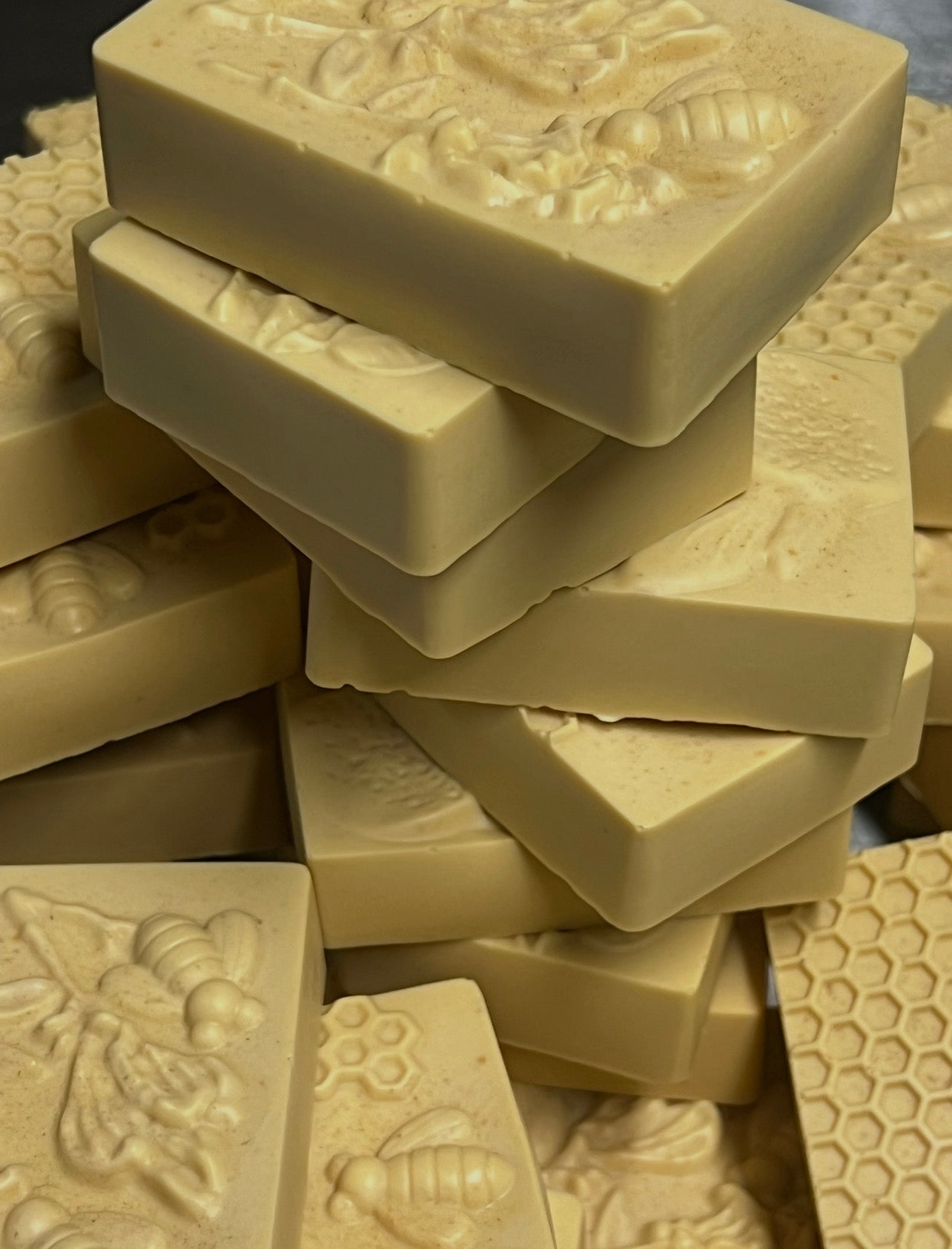 Made with a creamy goat milk melt & pour base, this bar is enriched with honey for added moisture and castor oil to boost bubbly, luxurious lather.